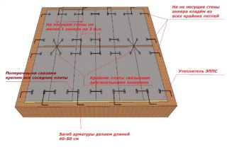 Il est permis d'installer des dalles de sol sur une fondation en bandes, des murs en divers matériaux, à l'exception des poutres et des planches en bois. Un caisson constitué de matériaux à faible densité (béton cellulaire, bloc de mousse, béton d'argile expansée) est en outre renforcé par une ceinture en béton armé, sur laquelle reposent directement les dalles.