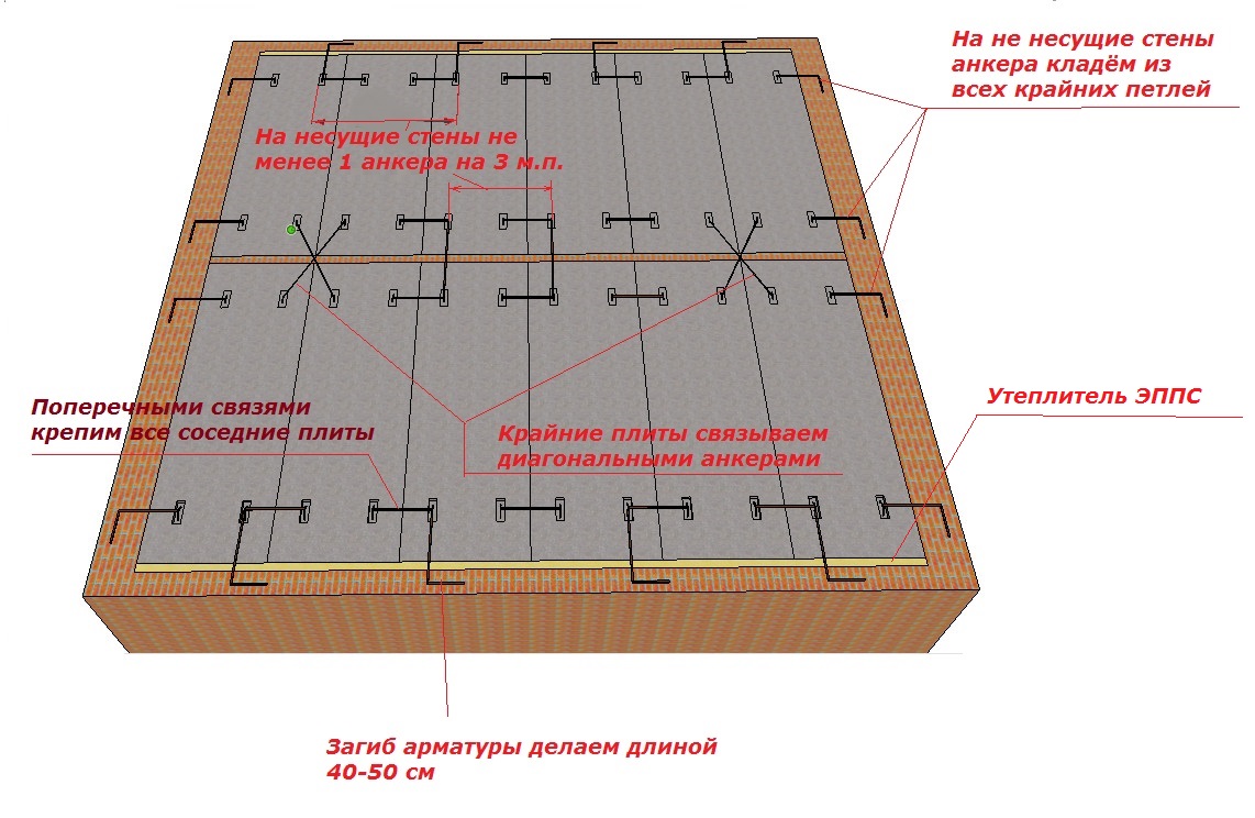 Vous ne pouvez pas mettre des dalles de sol en béton sur du béton cellulaire, comme sur votre photo. Et maintenant, presque partout, le chevauchement est un monolithe. Les dalles de couverture appartiennent au passé.