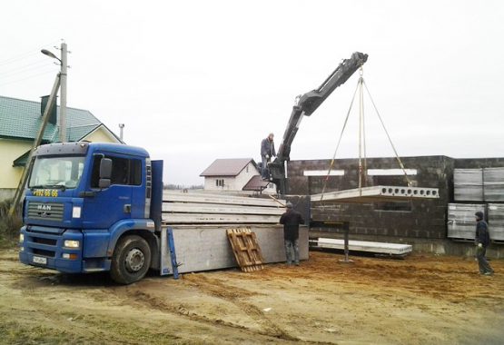 Les éléments de plancher en béton armé sont lourds, c'est pourquoi des camions ou des grues à tour sont utilisés pour les soulever et les installer. Les unités électromécaniques sont choisies en tenant compte de la masse des panneaux, de la capacité de charge des machines, de la position des structures, du type d'équipements et de dispositifs.