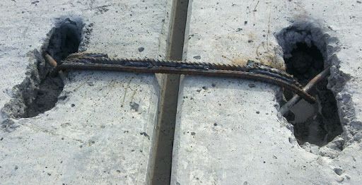 L'épaisseur des barres doit être au moins égale à la moitié de la hauteur de la dalle, les joints empêchent le contact du béton avec les charnières métalliques, réduisent les risques de corrosion et simplifient le travail des installateurs. La pile est située de manière à ce que la flèche de la grue l'atteigne et il y a une entrée de transport.