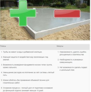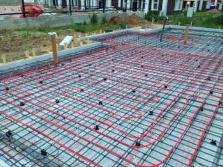 Les égouts, l'approvisionnement en eau sont posés dans le corps de la fondation et le chauffage au sol se fait à l'aide de conduites d'eau connectées à la chaudière. Le chauffage est effectué de manière uniforme, de sorte qu'aucun radiateur n'est requis au rez-de-chaussée du bâtiment. Le sol chaud est généralement caché dans la chape, mais dans le cas d'une base économique, le coulage n'est pas nécessaire.