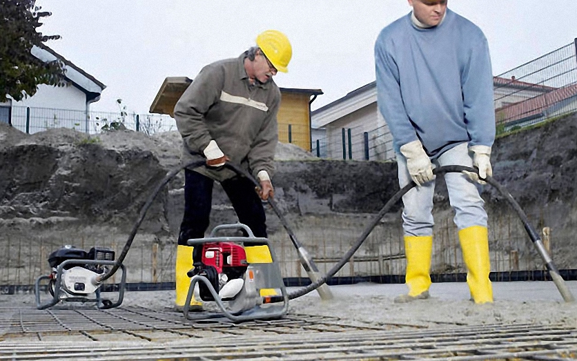 Le système de chauffage est vérifié avant le bétonnage. Les tuyaux sont remplis d'énergie et le système est pressé pour identifier les zones de fuites. Le béton est mélangé ou commandé après que tous les travaux aient été effectués, et la marque du mélange est indiquée dans le projet. La masse est répartie uniformément sur la surface de la dalle à l'aide de pelles, et avec une truelle, elle est enfoncée dans des endroits difficiles.