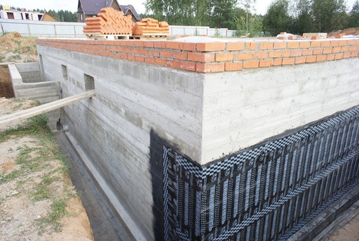 Une couche du mélange est appliquée sur la dernière rangée de briques, suivie d'un nivellement. Après séchage, une imperméabilisation est installée, similaire à celle entre le sous-sol et la fondation: 2 couches de matériau de toiture avec du mastic entre elles. Une isolation et une protection verticale contre l'humidité sont installées. La maçonnerie peut être revêtue de pierre artificielle ou naturelle.