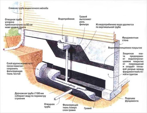 Le système de drainage des fondations est conçu pour drainer le sol adjacent, collecter et drainer l'humidité à l'extérieur du site ou dans un réservoir spécialement aménagé à cet effet dans des conditions de développement continu. Dans tous les cas, il faut se concentrer sur le volume maximal d'apport d'eau aux valeurs de pointe typiques de la saison chaude.