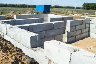 La largeur de la tranchée pour les blocs de 40 cm est prise 1 m de plus que cette taille pour la pose d'un matériau isolant, d'une couche d'imperméabilisation et d'un dispositif de drainage. La profondeur des fosses est déterminée par la hauteur des éléments de fondation, un espace est ajouté pour le remplissage de sable ou de pierre concassée, la pose de coussins en béton.