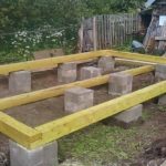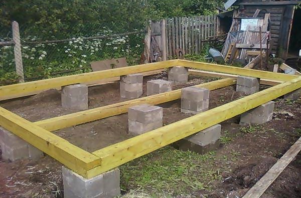 - De colonne. C'est l'option la plus simple et la moins chère pour aménager la base des structures en bois léger. Les supports peuvent être constitués de moellons, de briques, de blocs de béton armé et de bois. Dans le même temps, la fondation d'une barre doit être soigneusement traitée contre l'humidité et les parasites. Les supports sont placés à une distance allant jusqu'à 200 cm autour du périmètre du bâtiment, sous les murs intérieurs et aux points soumis à des contraintes accrues. En règle générale, la profondeur de pose ne dépasse pas 50 cm avec un remplissage supplémentaire d'un coussin de sable ou le coulage d'une base en béton. Le calcul du nombre de poteaux se fait sur la base de l'analyse du poids de la maison et de la capacité portante du sol.