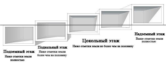 Si l'échafaudage du bâtiment s'élève à la hauteur du sous-sol, un sous-sol élevé est réalisé, le degré d'élévation est déterminé par le niveau du sol du premier étage.