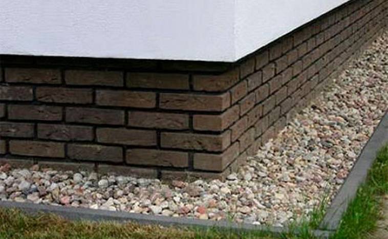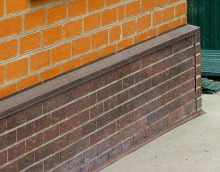La jonction du mur et de la plinthe en saillie est exposée à la pluie et à la pénétration de la neige, malgré la couche de la membrane étanche horizontale. La connexion est finie avec des matériaux appropriés et l'eau est évacuée de l'étagère en saillie. Un reflux est fait avec une pente du mur et la partie extérieure du piédestal est traitée avec des imprégnations.
