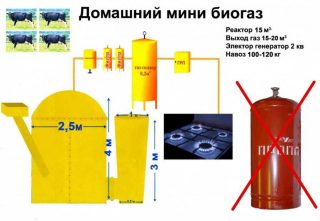 Sur cette base, on suppose que un mètre cube la cuve de fermentation émet suffisamment de gaz pour le chauffage 10 m² de logements... Ainsi, pour chauffer une maison de campagne d'une superficie de 50 m², vous aurez besoin d'un ballon de 5 m³.