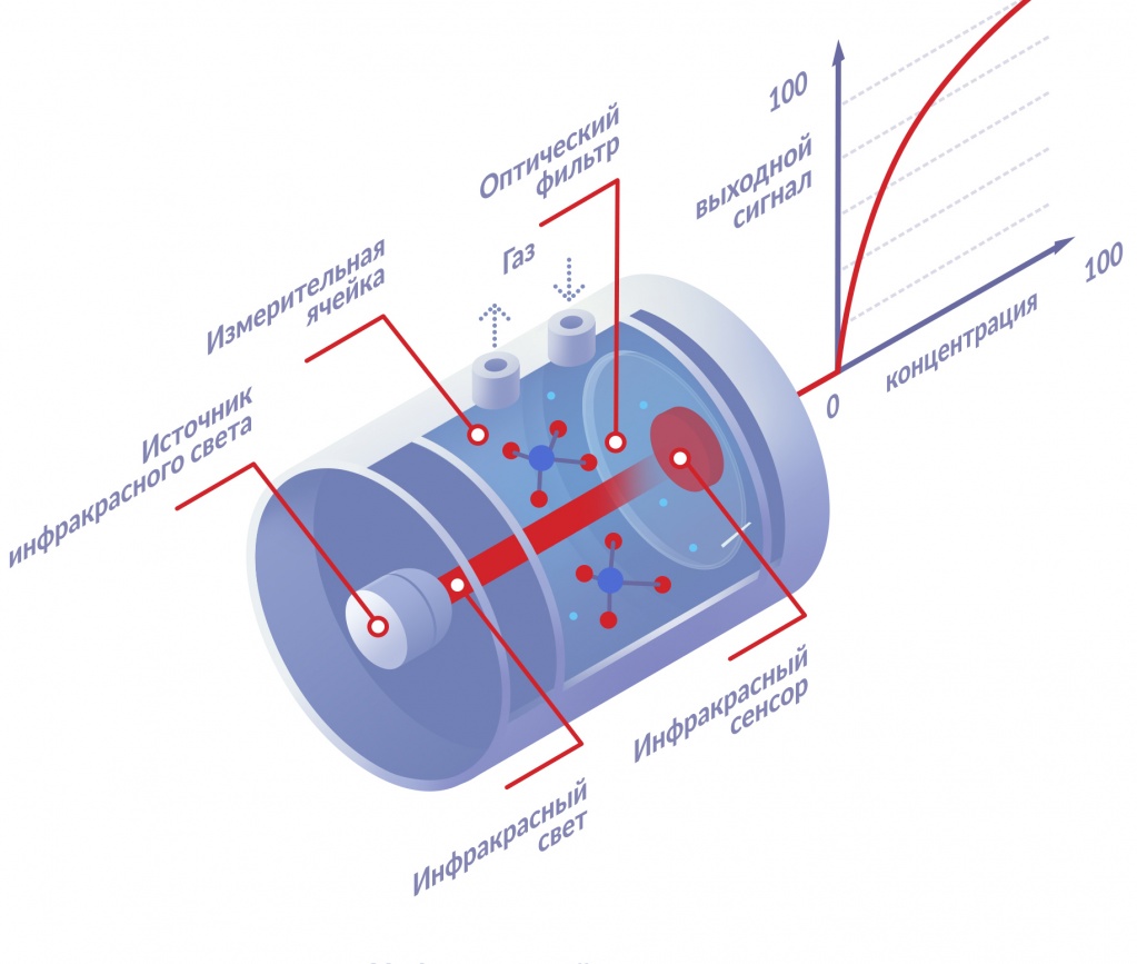 - Infrarouge - le spectre d'absorption de la lumière est différent pour différents gaz. Dans un capteur infrarouge, le mélange d'air est étudié dans le domaine infrarouge. Le capteur calcule la concentration de monoxyde de carbone sur la base de la différence entre l'absorption dans le milieu de contrôle et celui analysé. L'appareil est extrêmement précis et donne des résultats presque instantanément. Dans la vie de tous les jours, on ne trouve pas de tels appareils, car ce sont en fait des équipements de laboratoire de faible puissance.