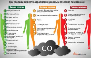 Le monoxyde de carbone est un grand danger pour les humains et les animaux domestiques. La dose létale n'est que de 0,1% dans l'air inhalé... Même à une concentration aussi faible, la mort survient en 1 heure... Avec une teneur en gaz plus élevée, une personne meurt d'une intoxication aiguë dans les 10 minutes.