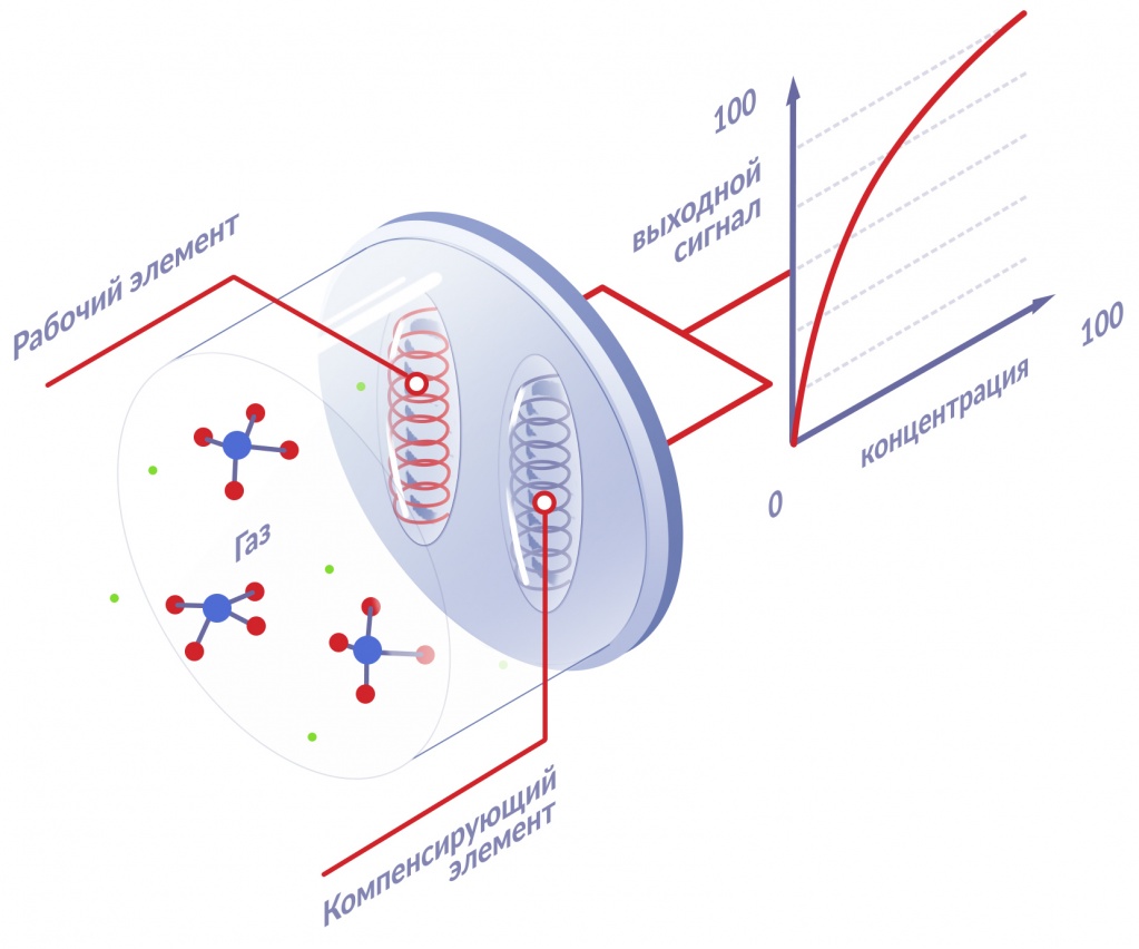 - Capteur catalytique - dans le corps de l'analyseur de gaz, le monoxyde de carbone brûle pour produire du dioxyde de carbone et de l'eau. Si le mélange entrant contient beaucoup de monoxyde de carbone, la température de l'air dans la chambre augmente et chauffe l'élément catholique - la bobine de platine. Ce dernier change de résistance en fonction de la quantité de chauffage. Le capteur catalytique est très précis et récupère rapidement, c'est pourquoi de tels dispositifs sont coûteux et plus couramment utilisés dans l'industrie.