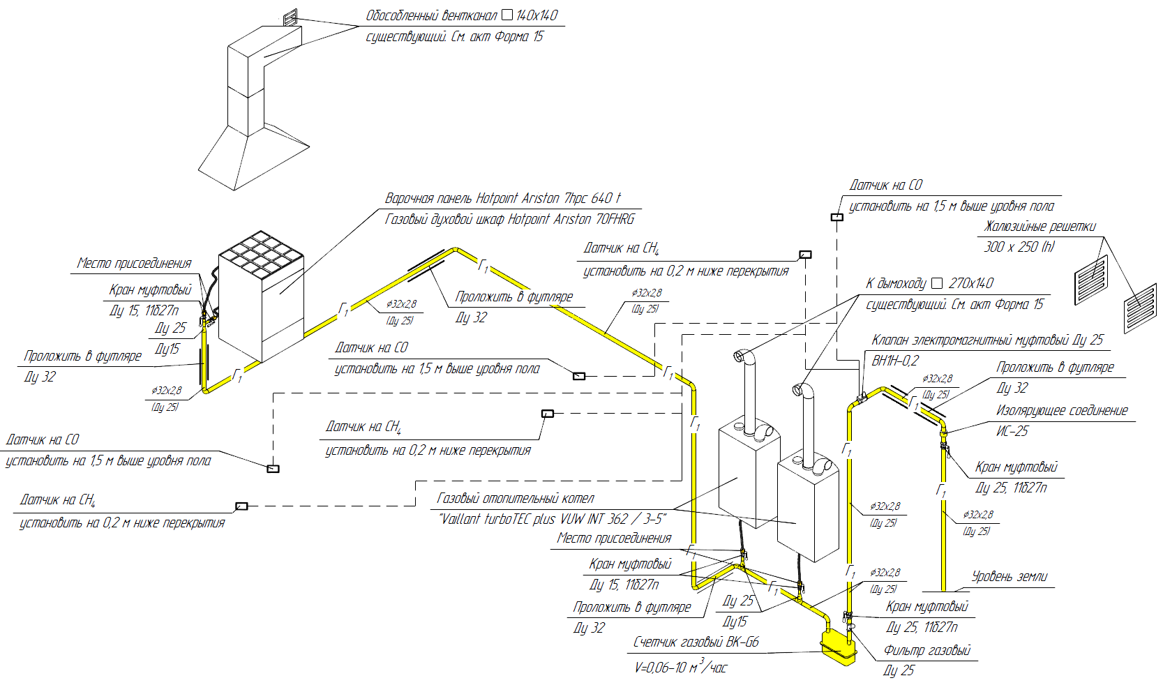 - il est interdit de poser un gazoduc sous une fenêtre ou une porte, ainsi que sous une conduite de ventilation;