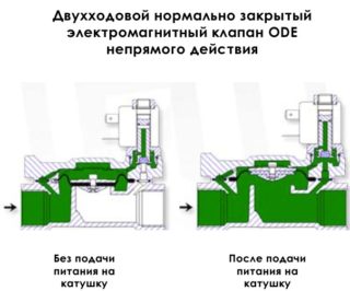 Compte tenu de la position de l'élément principal et de son schéma, la vanne d'arrêt de gaz peut être normalement ouverte ou fermée. Dans le premier cas, un passage pour gaz ou liquide sera ouvert dans l'élément, lorsque la tension est appliquée, il se fermera automatiquement, dans le second cas, ce processus est l'inverse. En plus de ces dispositifs, il existe leurs homologues universels fonctionnant dans deux directions à la fois.