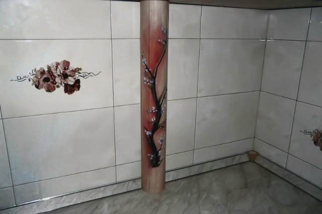 - Une manière inhabituelle et plutôt laborieuse - mosaïque, pierre ou verre. Ce décor a l'air très impressionnant.