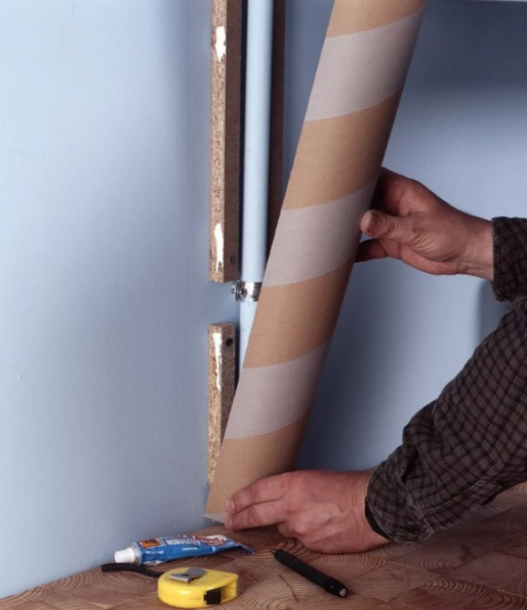 Il existe également une autre solution. Au lieu de boîtes de cloison sèche plutôt encombrantes, la conduite de gaz peut être cousue panneaux plus légers à partir de tout matériau approprié :