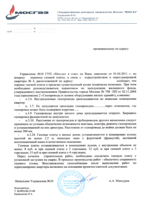 La résolution du problème prend généralement environ une semaine. Cependant, le permis ne dépend pas seulement du service de gaz. Dans un immeuble à plusieurs étages ou dans une maison privée en béton cellulaire les murs ne tiennent pas bien les attaches... Pour effectuer des modifications ici - déplacer des tuyaux, raccourcir, compacter - vous devez déterminer si les murs peuvent supporter la charge supplémentaire.