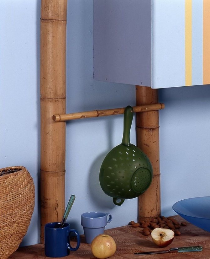 - Matériaux en bois - contreplaqué perforé, doublure, bois naturel. Tout matériau convient pour recouvrir la boîte. Une option très intéressante est l'utilisation d'un tronc de bambou ou de son imitation. Cette solution convient à une cuisine éco-style.