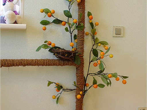 - Le gazoduc est enveloppé dans d'épaisses Cordesjouer avec la ressemblance avec un tronc de palmier. Pour rendre cette finition plus attrayante, "l'arbre" est complété par des agrumes et des fleurs artificielles.