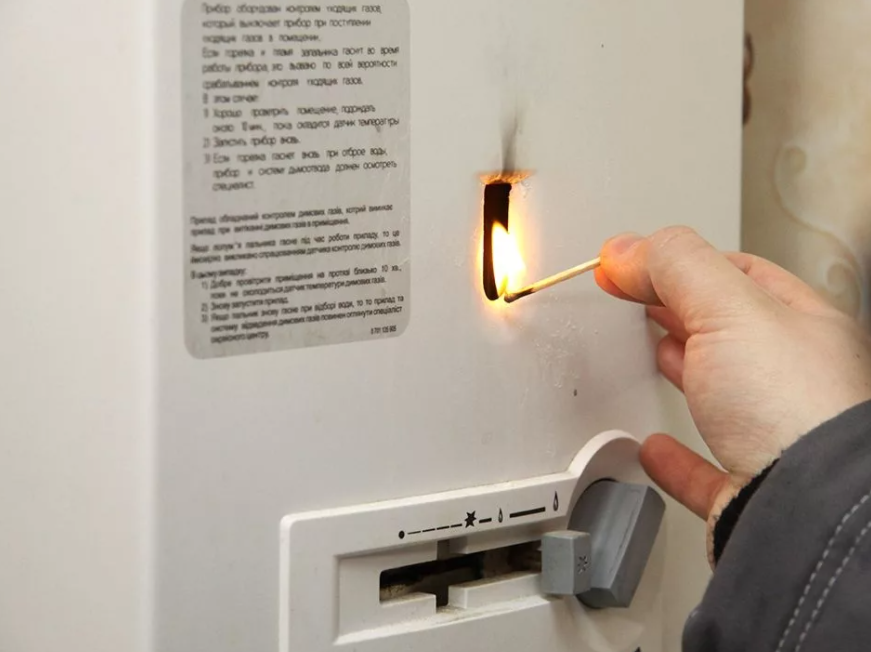 L'allumage manuel n'est presque jamais utilisé ces derniers temps. Il est nécessaire d'ouvrir le robinet d'alimentation en liquide de la colonne. Ensuite, l'alimentation en gaz est démarrée (généralement une vanne ou un levier). Une allumette allumée est amenée au brûleur, le gaz qui s'échappe est enflammé par le feu.
