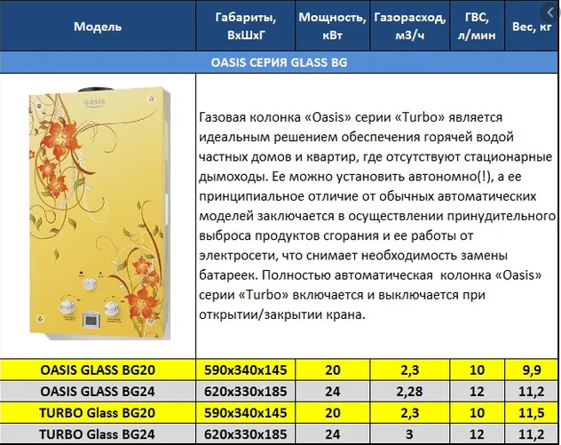 - Aperçu des chauffe-eau à gaz, caractéristiques de l'inclusion