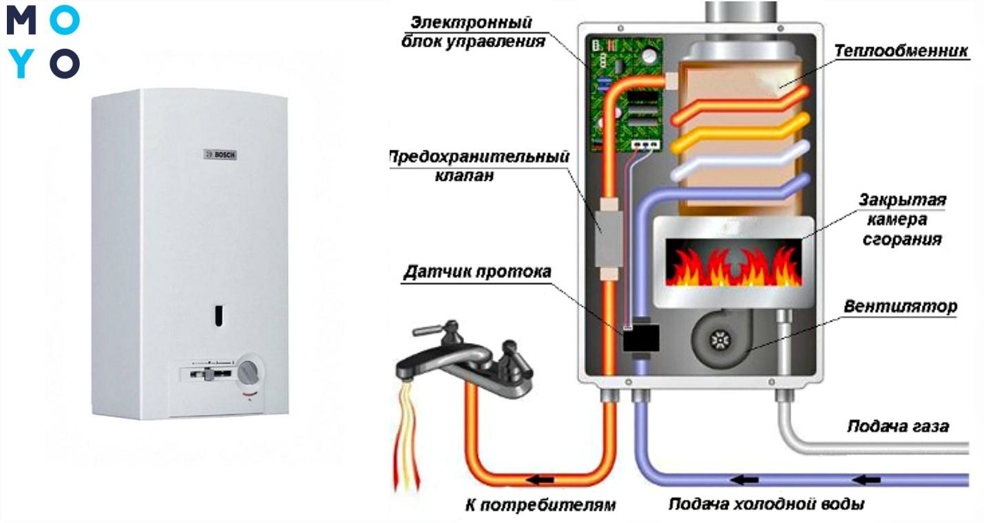 Les chauffages à gaz continus modernes sont faciles à utiliser et sûrs. L'eau commence à se réchauffer dans le système si la colonne de gaz est allumée correctement et si les conditions d'utilisation sont remplies. La chambre de l'échangeur de chaleur est représentée par un conteneur en acier situé au-dessus du brûleur ; elle a la forme d'un serpentin à saillies, recouvert d'une tôle. Un tuyau en spirale est installé à l'extérieur, à travers lequel l'eau s'écoule et se réchauffe.