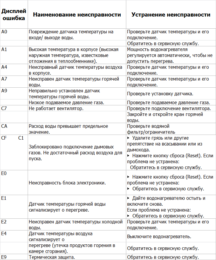 Si un la pression d'eau dans les tuyaux d'alimentation est insuffisante, alors la membrane n'ouvre pas la vanne et la colonne de gaz ne s'allume pas.En même temps, un clic caractéristique se fait entendre, mais le feu n'apparaît pas.