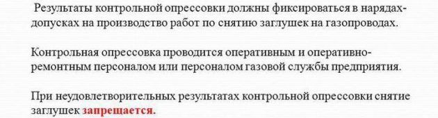 - Les tests de pression des gazoducs externes souterrains, posés dans des caisses, sont effectués trois fois. Pour la première fois immédiatement après le soudage et avant la pose. Ensuite, après remblayage de la tranchée, et enfin, avec l'ensemble du gazoduc.