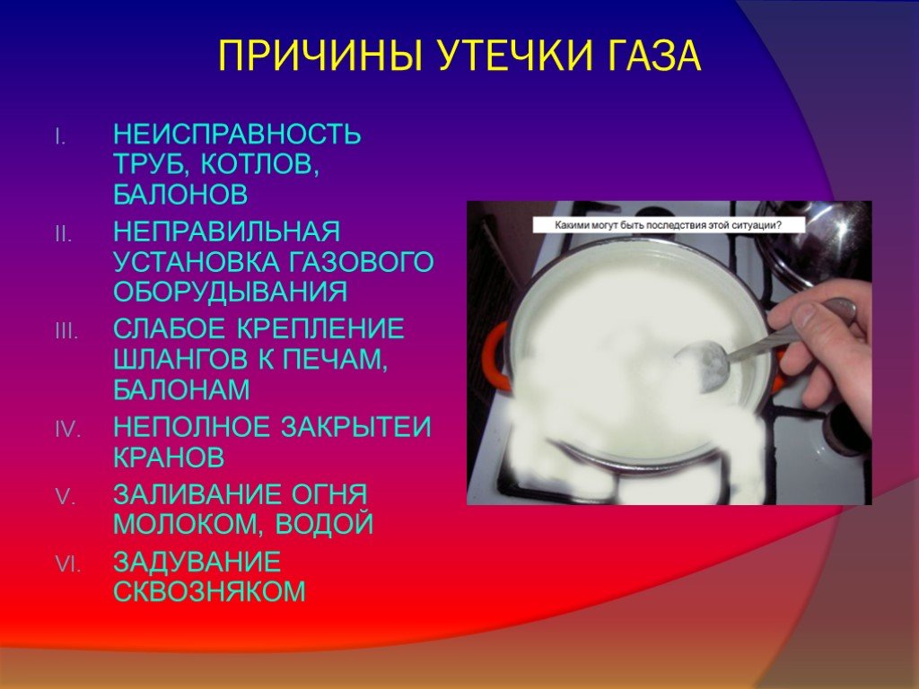 L'État a élaboré des lois qui prescrivent des vérifier l'état des réseaux et des appareils électroménagers dans les immeubles d'habitation et les immeubles privés. En cas de dysfonctionnement, une panne de n'importe quelle unité se produit situation d'urgence, puisque le gaz du pipeline pénètre dans l'air.