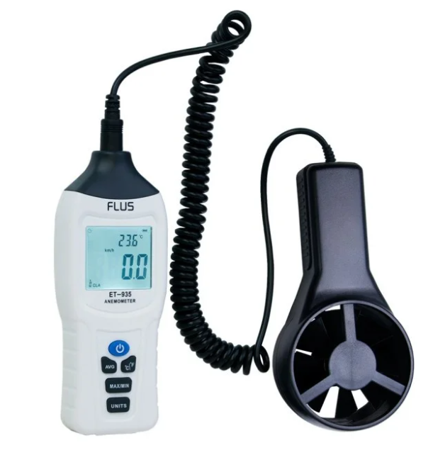 Anémomètre conçu pour contrôler la vitesse de déplacement des flux d'air dans le conduit de ventilation et la cheminée.