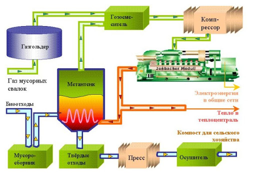 L'extraction du gaz des déchets et son utilisation ultérieure comme combustible vous permettent d'économiser sur les services publics et de réduire la charge sur l'environnement. Avec un grand volume de matières premières obtenues, il peut être utilisé pour chauffer de l'eau et produire de l'électricité.