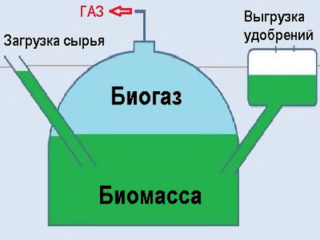 - Support de gaz. Situé au point le plus élevé de la structure. Conçu pour la collecte et le stockage du produit fini. La capacité de stockage correspond au volume estimé de gaz produit. Si le réservoir est en métal, le gaz y est contenu sous une pression allant jusqu'à 12 atmosphères.