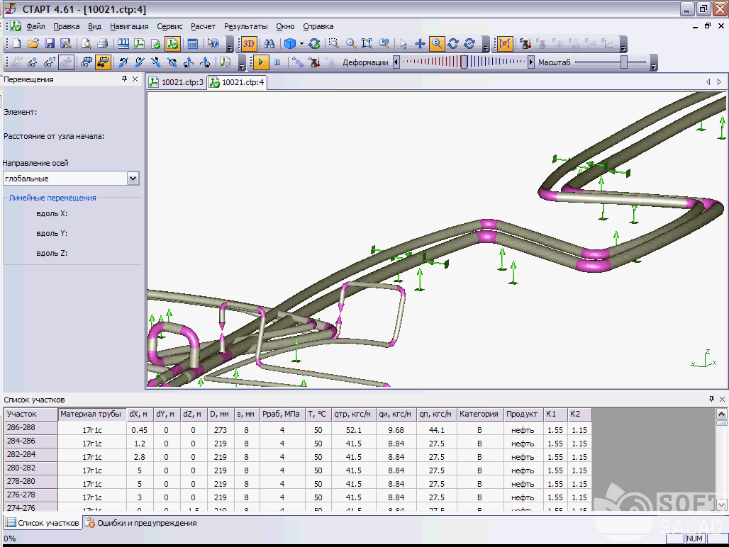 Les sections ramifiées d'un gazoduc avec des données initiales différentes sont calculées séparément, mais la procédure est effectuée de la même manière pour chaque zone. La vitesse d'écoulement change dans les endroits de résistance et change dans la direction du mouvement. Les indicateurs linéaires sont calculés sur les longueurs calculées des sections de ligne.