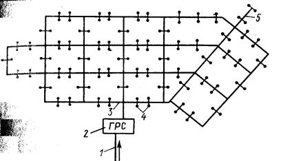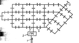 Le calcul est effectué sur la base du schéma de distribution, en tenant compte des branchements vers les zones de consommation. La source de séparation est le poste de distribution de gaz. Le diamètre du gazoduc commun et des dérivations est basé sur la pression du gaz à la fin du trajet à l'entrée du consommateur.