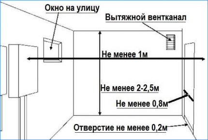 La loi permet de cacher le chauffe-eau à gaz dans la cuisine sous la décorationmais le panneau doit être facilement amovible. Dans les maisons privées, il doit y avoir une petite fenêtre dans la fenêtre pour ventiler la pièce en hiver. Les ouvertures totalement aveugles dans la cuisine sont interdites.