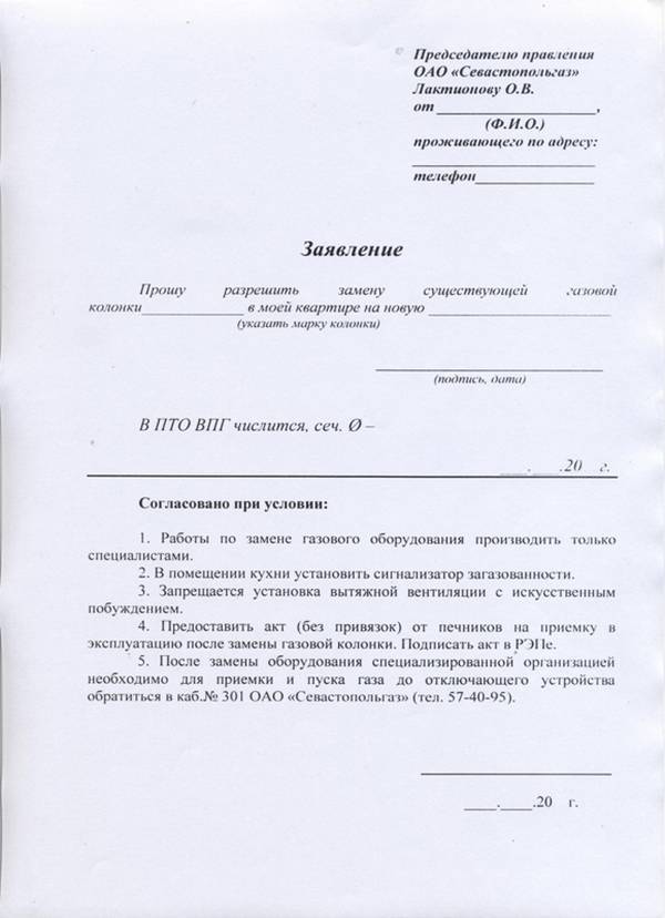 Si le remplacement du chauffe-eau à gaz est censé être transféré à un autre endroit, le réseau doit être réorganisé. Dans ce cas, ils commandent un projet et rédigent les mêmes papiers que pour l'installation initiale.