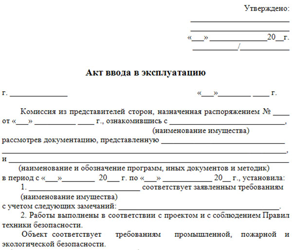 La rédaction de l'acte s'accompagne du premier démarrage de l'unité. Où contrôle de l'inspecteur technique: