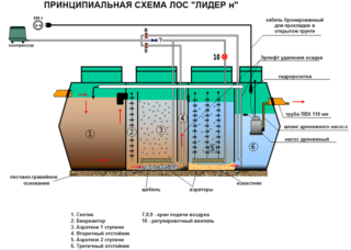 À l'étape suivante, les communications sont établies, un compresseur est installé et connecté au système d'aération. Toute la structure est recouverte de terre. Après vérification du fonctionnement de tous les systèmes et mise en route du contrôle, l'aérotank est mis en service.