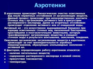 Si l'alimentation en air est réduite, des dépôts peuvent se former.La concentration minimale en oxygène pour maintenir l'activité vitale des micro-organismes doit être supérieure à 0,2 mg / dm3, pour une purification biochimique efficace - 0,5 mg / dm3.