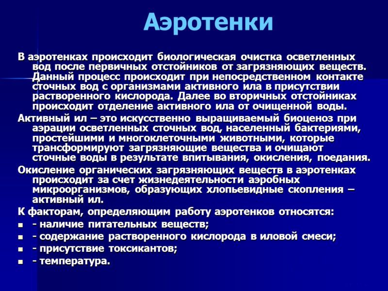 La qualité de la clarification des eaux usées dans les aérotanks doit être conforme au SNIP 2.04.03-85.