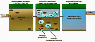 Lors du nettoyage, les formes bactériennes décomposent la matière organique en composants simples : eau, dioxyde de carbone et une petite quantité de minéraux qui se déposent au fond de la station d'épuration. En conséquence, le dioxyde de carbone s'évapore, l'eau pénètre dans le sol ou est pompée. Le composant liquide et le sédiment minéral ont de réelles applications comme aliment pour les plantes.