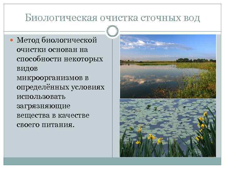 Les méthodes biologiques de traitement des eaux usées présentent un certain nombre d'avantages, dont l'un est la capacité d'être utilisé pour de grands volumes de déchets ménagers et industriels. Le principal maillon actif est constitué de micro-organismes qui se nourrissent d'azote, de protéines, de glucides, de graisses, d'acides. Les bactéries décomposent la matière organique en composants neutres - gaz et eau.