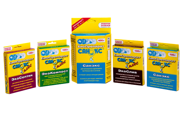 - Saneks - Nettoie bien les tuyaux. Recommandé pour une utilisation dans les maisons avec tout-à-l'égout, avec accès à un puisard, le contenu se transforme en liquide. Peut être utilisé pour l'arrosage. Sûr.
