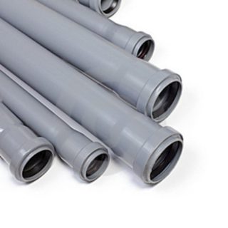 Le tuyau gris est en polychlorure de vinyle, il ne craint pas la corrosion, il n'est pas lourd, il est facile à installer, il a une couleur neutre en termes d'esthétique. Les tuyaux varient en taille, mais leur diamètre est limité.