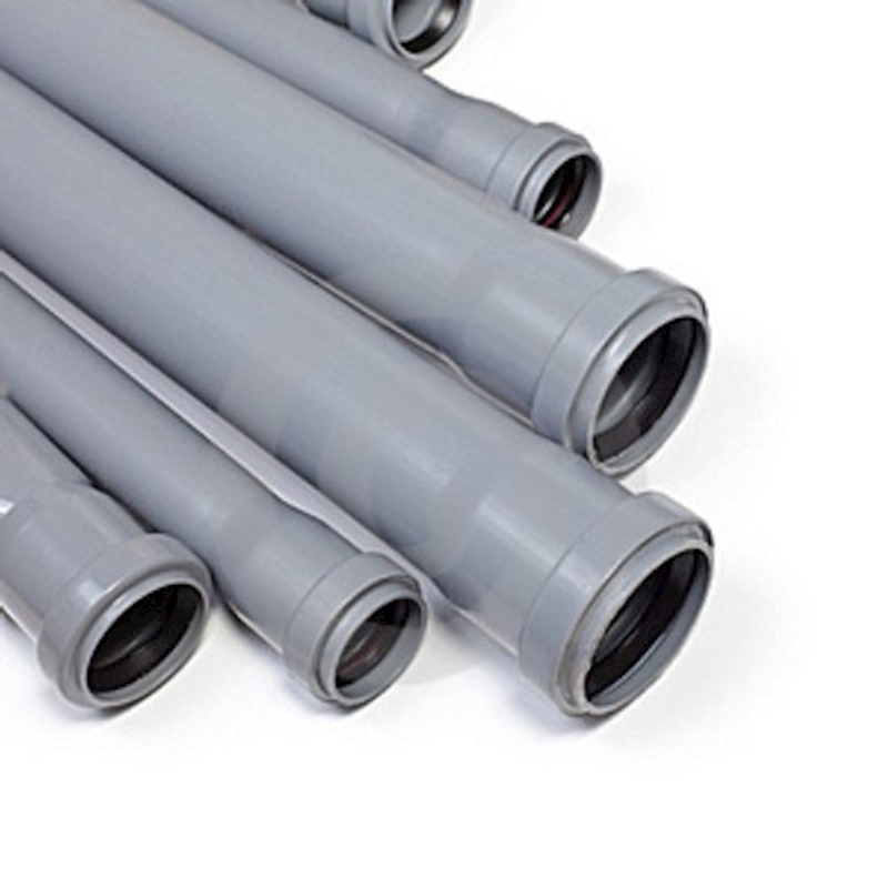 Ce type de tuyau est destiné à l'assainissement externe, il est en PVC (polychlorure de vinyle), le diamètre est de 110, 125, 150 mm - la norme pour de tels tuyaux. En longueur, ils peuvent mesurer 500, 1000, 2000, 6000 mm. Les tuyaux de grande taille sont conçus pour créer des systèmes d'égouts avec une grande surface d'écoulement, des égouts pluviaux et des ponceaux. L'épaisseur d'un tel tuyau est de 3,2 mm. Un tel tuyau peut être posé à une profondeur de 4 m. La plage de température va de -10 à + 60. Un tuyau lisse avec une douille, selon la classe de rigidité SN 4, se compose de plusieurs couches. Il est idéal pour les égouts extérieurs.
