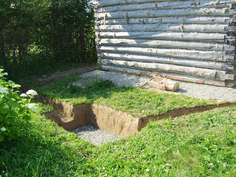 - Tout d'abord, à une distance de 50 cm de la fondation, un trou est creusé à environ un mètre et demi de profondeur. Plus loin, une tranchée est créée, menant directement au puits, qui est généralement situé à une distance d'environ trois mètres du bain. La forme de cette tranchée est mieux faite sous la forme de la lettre U.