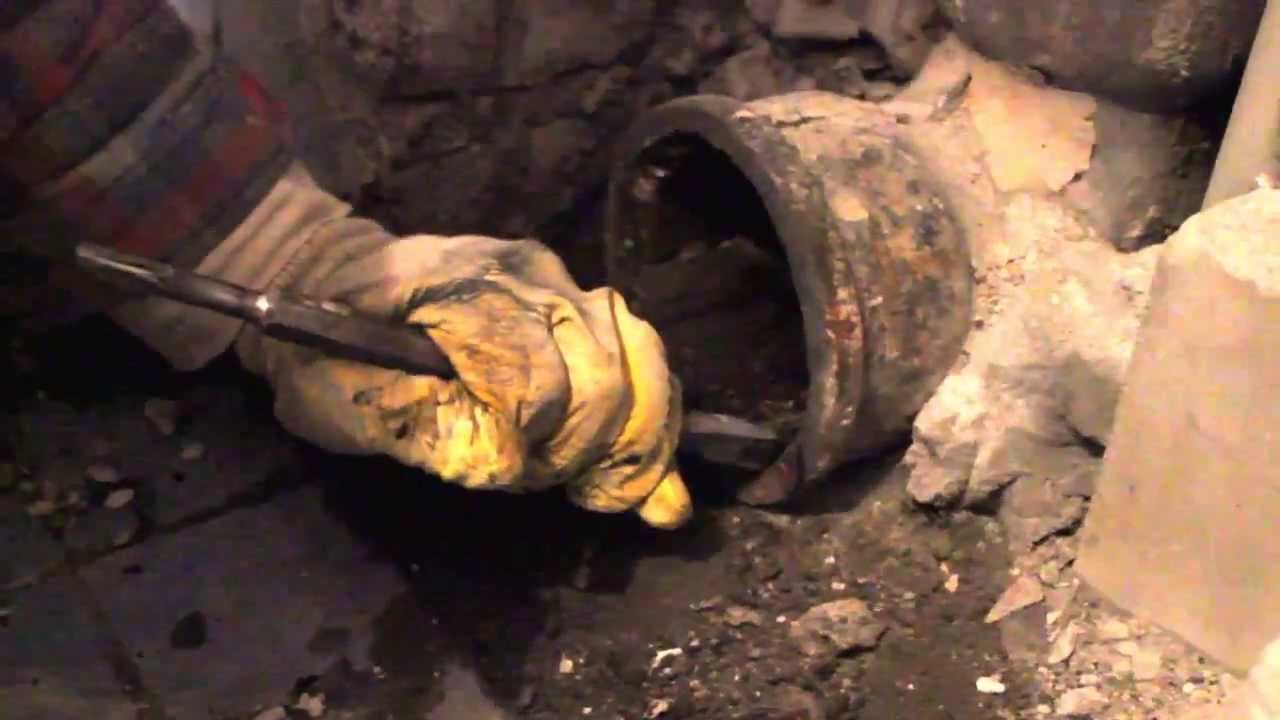 Une autre méthode pour gaufrer les joints du système d'égout en fonte tout en préservant les éléments de raccordement consiste à retirer l'ancien matériel de fixation. Utilisez un ciseau et un marteau. Abattez soigneusement le ciment, puis utilisez un tournevis ou un couteau pour ramasser le câble ou le remorquage et retirez-le de la prise. Le champ de cette section de tuyau est assez facile à enlever.