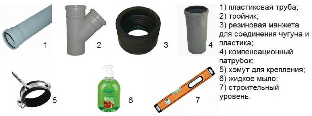 - raccords de montage : tés en plastique, raccords, transitions spéciales de la fonte au plastique ;
