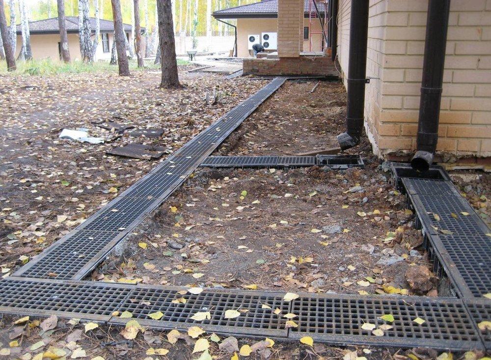 L'emplacement du drain est choisi de manière à ce que l'eau du tuyau soit dirigée directement vers le centre. S'il est impossible de localiser le drain au point le plus bas du site, des dépressions spéciales y sont attirées, le long desquelles l'eau s'engouffrera dans le récepteur.