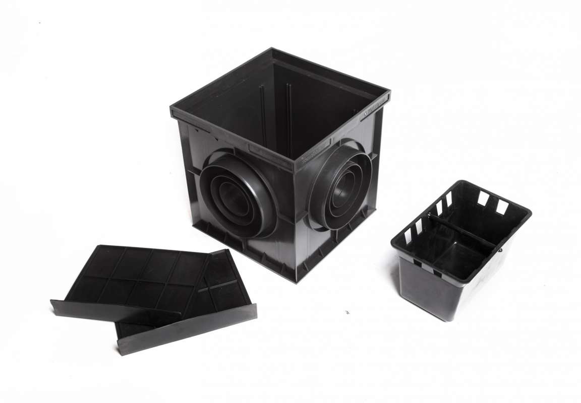Les tailles des arrivées d'eau de pluie diffèrent selon le but et la forme. La version standard est un cube avec des côtés de 300 ou 400 mm. Les parois latérales sont équipées de tuyaux de dérivation pour le raccordement aux autoroutes d'une section de 110 à 200 mm. Les modèles cubiques et autres modèles rectangulaires peuvent être installés partout où se trouve un puits d'eaux pluviales.